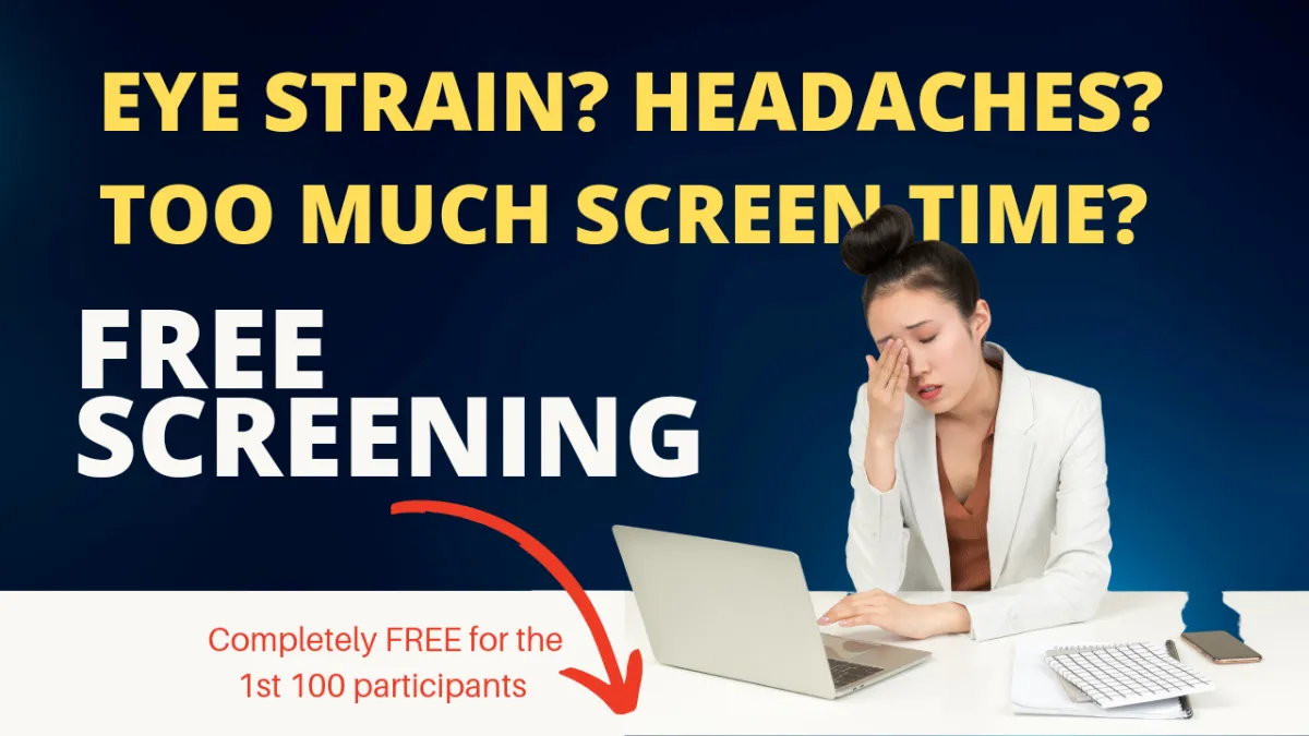 For a LIMITED TIME, we are offering a FREE SCREENING to help identify any eye misalignments and provide relief from digital eye strain.